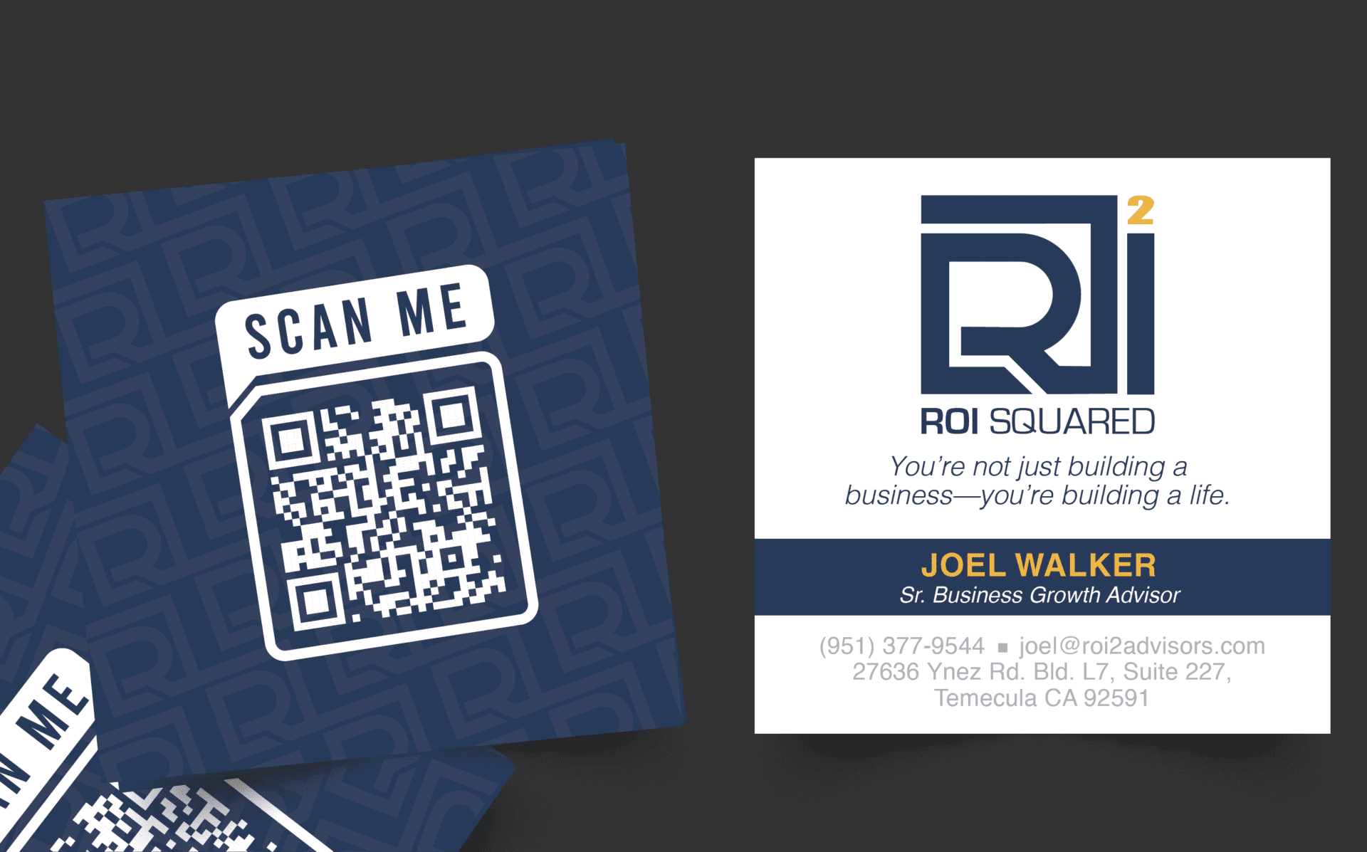 - Brand Identity: We designed a professional and impactful brand identity, including logo, color scheme, and typography, that visually reinforced ROI² Advisors’ position as a trusted business advisor.